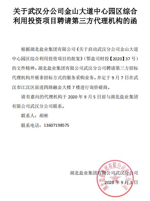 關(guān)于武漢分公司金山大道中心園區(qū)綜合利用投資項目聘請第三方招標(biāo)代理機構(gòu)的函.pdf