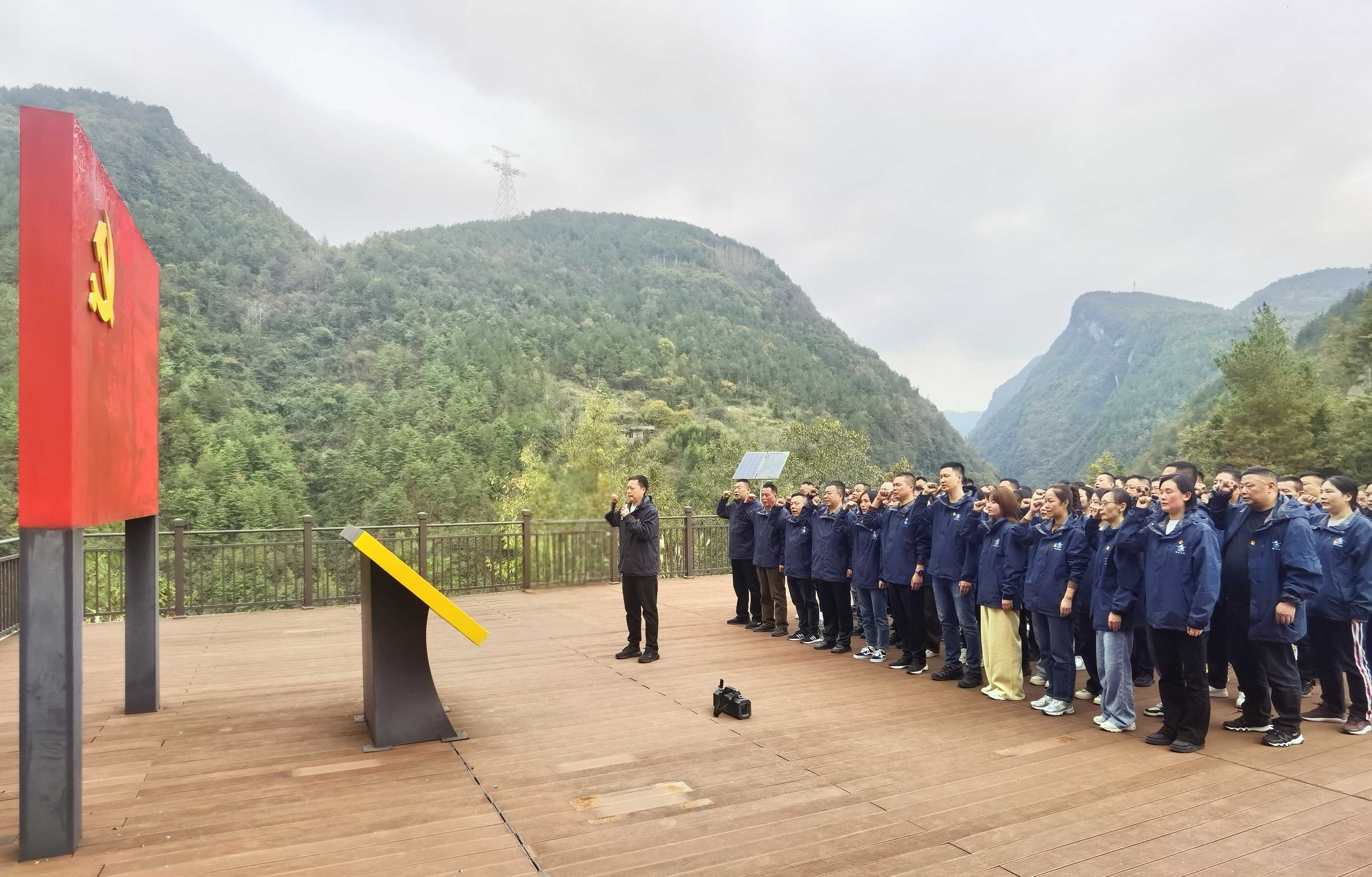 在店子坪紅色教育基地,全體人員踏上入黨宣誓平臺(tái),在莊嚴(yán)的黨旗下,黨員們齊戴黨徽,舉起右手,莊嚴(yán)地重溫了入黨誓詞。鏗鏘有力的誓言回蕩在現(xiàn)場(chǎng)每一個(gè)人的心中,激發(fā)了大家不忘初心、牢記使命的決心和信心。