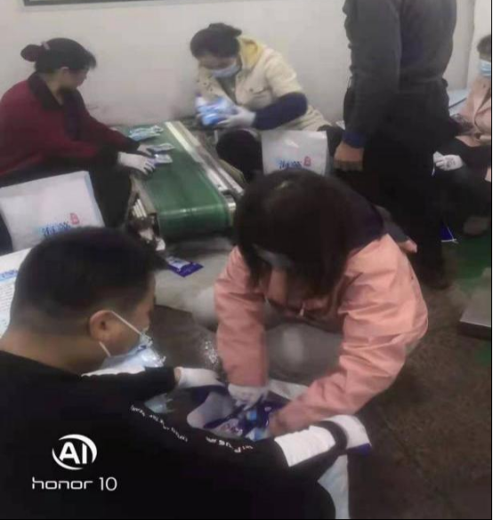 為期六天的支援生產(chǎn),公司領(lǐng)導(dǎo)率先垂范,黨員干部勇?lián)袌裕毠ほx躍參與。大家同藍(lán)天員工在生產(chǎn)中互相學(xué)習(xí)、配合,撿包、封包、堆碼,雖然忙碌,但秩序井然;雖然汗水浸濕了衣裳,但熱情在心中,笑容在臉上。